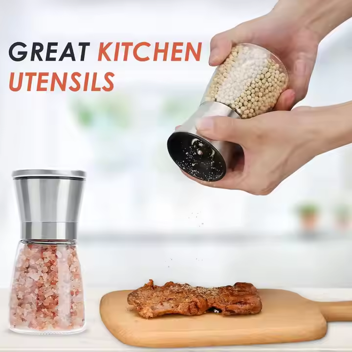 Stainless steel salt and pepper grinder! Made of high-quality stainless steel, stainless steel corrosion resistance, easy to clean, grinding efficient and durable sharp. Adjustable coarseness function allows you to freely switch between fine powder and coarse grain, suitable for a variety of dishes. Spice grinding is easy.