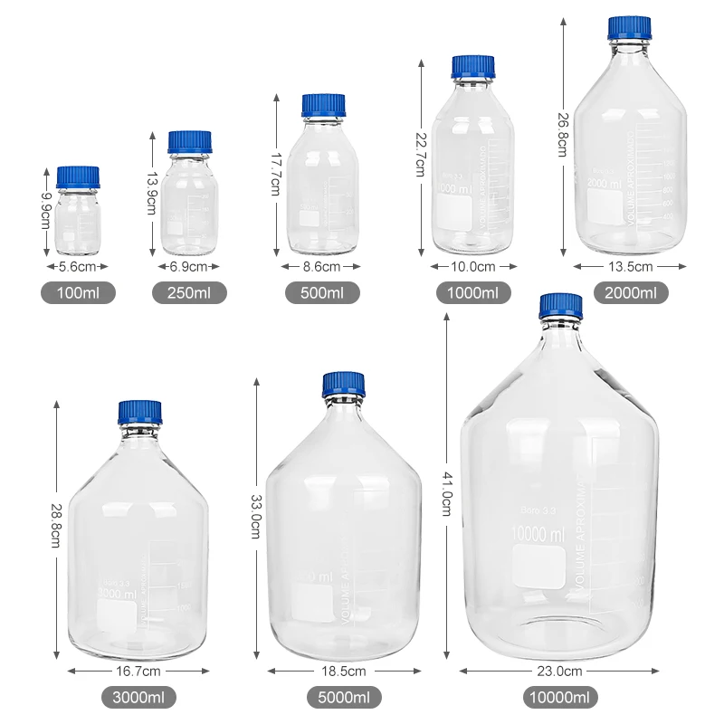From 25ml micro-volume reagent dispensing and 50ml-100ml small-dose experimental solution preparation, to 250ml-500ml conventional reagent storage, and then to 1L-10L large-volume solution preparation and storage, a full range of capacities precisely matches different experimental needs. Whether it's university research laboratories, corporate quality control centers, or fields such as biomedical and chemical research and development, suitable specifications can be found, eliminating the need for frequent bottle type changes and reducing experimental preparation costs.