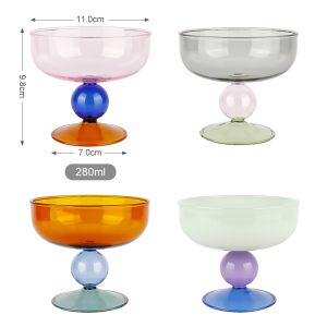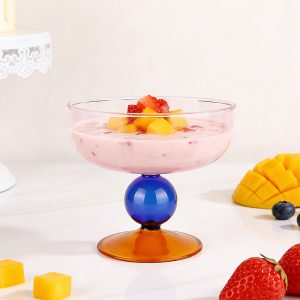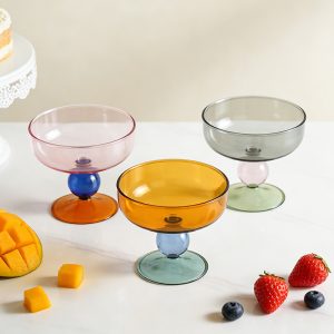 Our bulk colorful glass ice cream cup dessert glass cup ice cream bowl series combines durability with elegant design. Made by a trusted factory bulk glassware manufacturer, these cups are perfect for ice cream, desserts, and fruit servings.