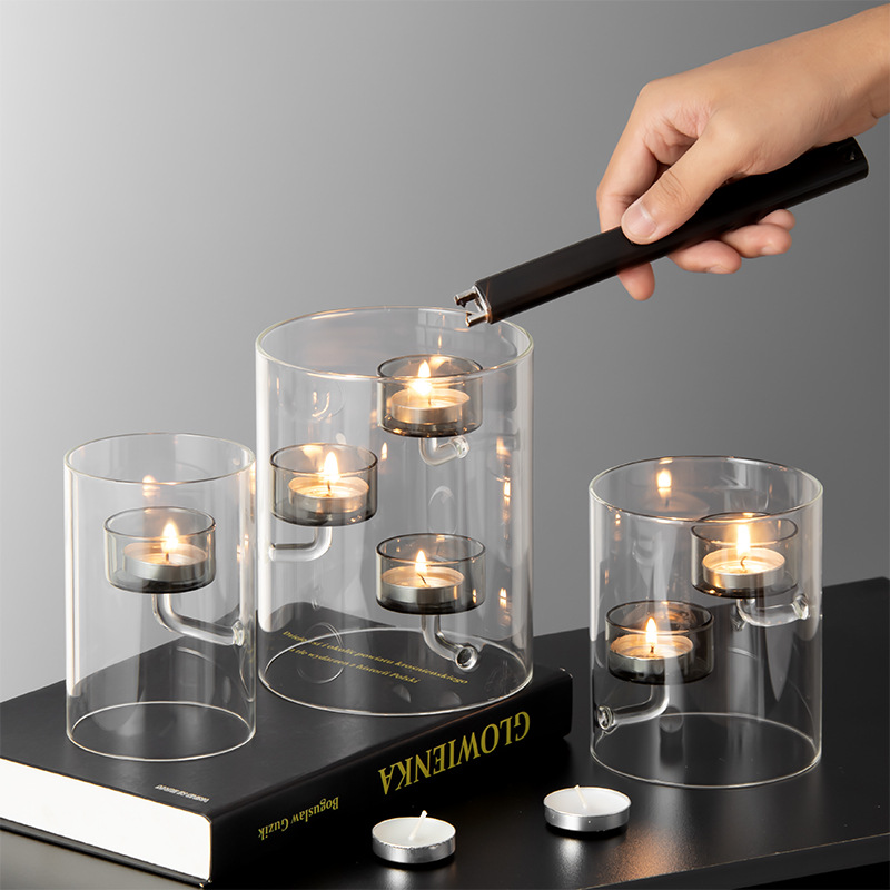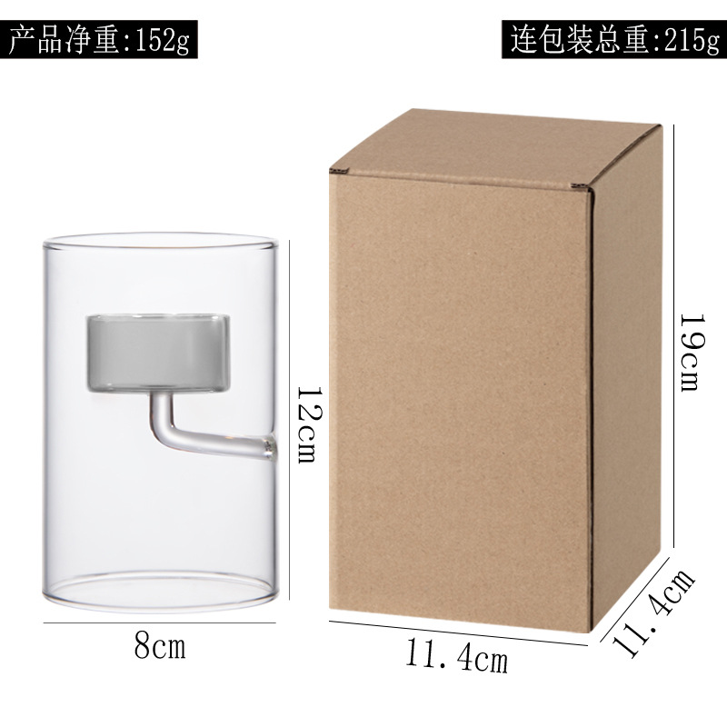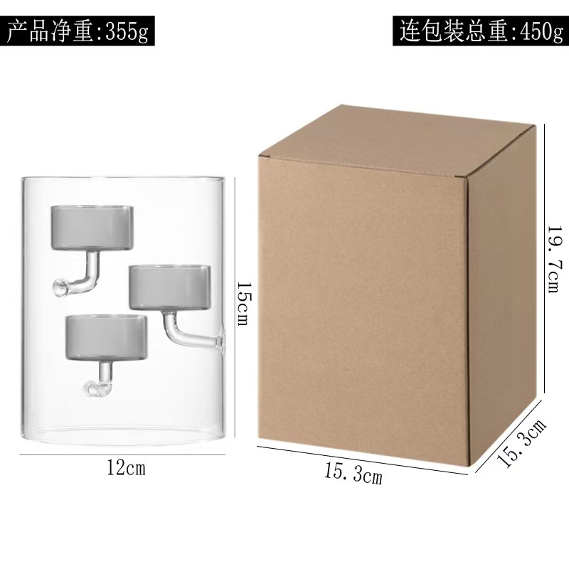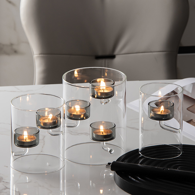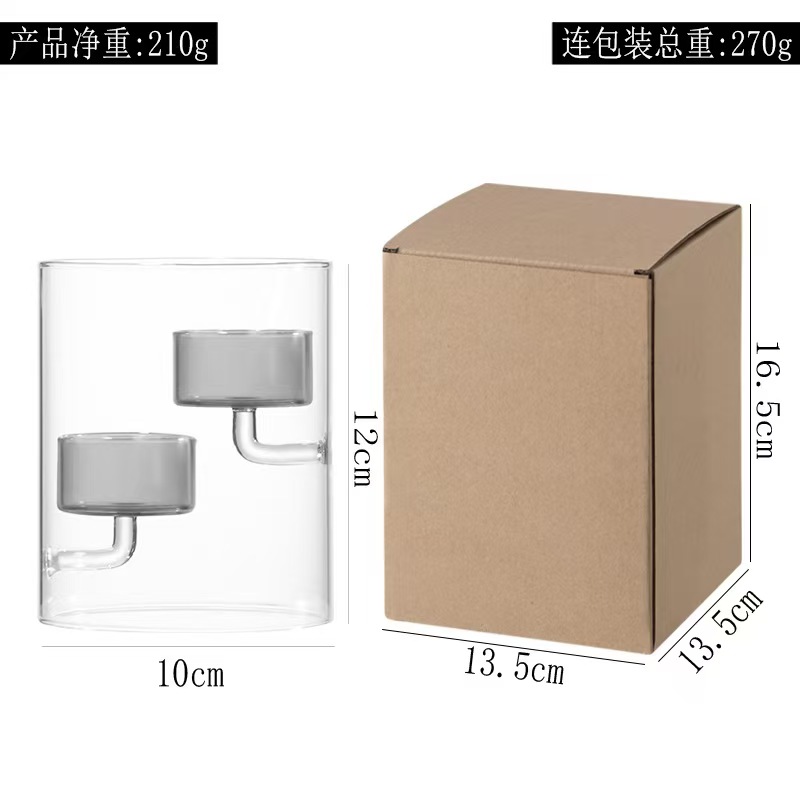 Breaking away from the monotony of traditional candlesticks with its "two-tone gray and clear" design, the outer layer is made of crystal-clear glass, its clean cylindrical outline echoing the elegant lines of European-style home decor. The inner layer is encased in a low-saturation, high-grade gray glass, possessing a tranquil, frosted quality that is understated yet captivating. When the candle is lit, the light filters through the double-layered glass, creating unique play of light and shadow: the outer transparent glass clearly reflects the flickering flame, while the inner gray glass filters the warm light into a soft, misty gold. The light and shadow cast hazy gray patterns on the tabletop, as if bringing a tranquil afternoon from a European manor into your home. Whether paired with minimalist, industrial, or vintage-style home decor, it blends seamlessly, instantly elevating the sophisticated atmosphere of the space and becoming a subtle yet striking feature in the entryway, dining room, or bookshelf.
