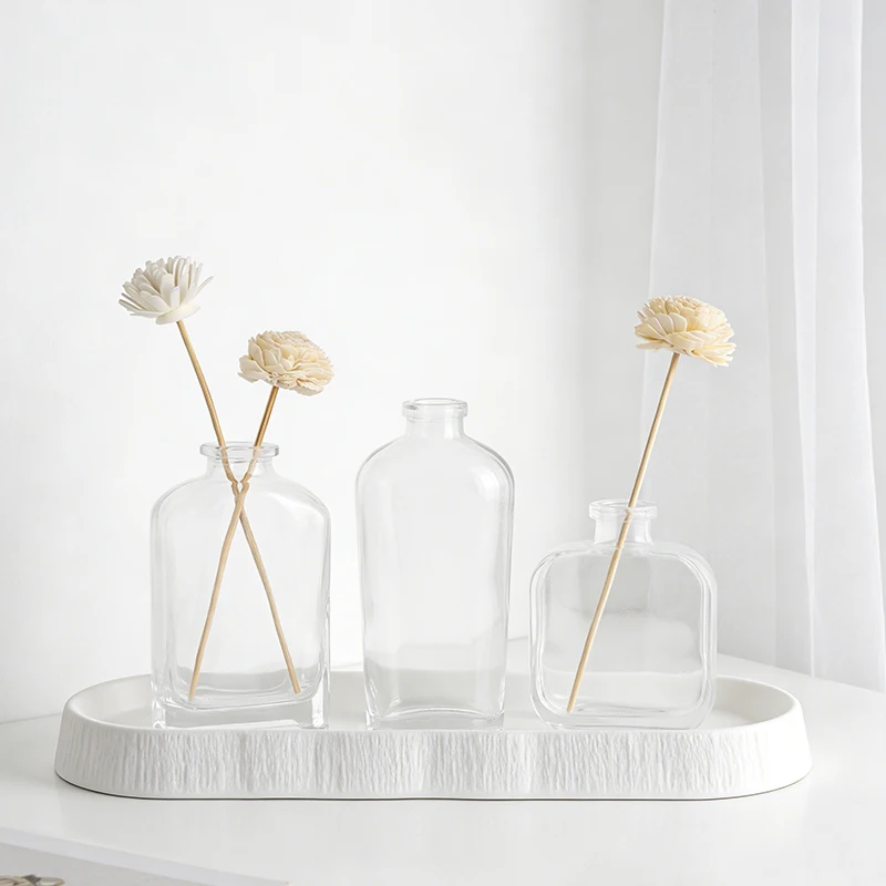 The new luxurious flat rectangular perfume glass bottle combines minimalist aesthetics with exquisite craftsmanship, providing a unique high-end container for every delicate fragrance. It is the perfect choice for fragrance brands to upgrade their style and for personalized collections. Whether it's for storing perfume concentrate, holding diffuser oils, or creating home fragrance decorations, its unique texture elevates the overall style and showcases exceptional taste.