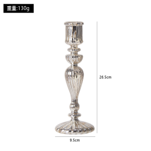 The charm of this candlestick starts with its exquisite materials and craftsmanship. The main body is made of high-transparency glass, whose crystal-clear texture not only clearly reflects the flickering of the candlelight but also makes the overall shape light and flexible. The silver-plated coating carefully wrapped on the outer layer presents a warm and delicate metallic luster through multiple retro processing techniques. It not only retains the luxury of European classical furniture but also avoids excessive exaggeration, which perfectly conforms to the current popular “retro style” aesthetic.