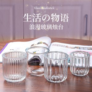Transparent Wide-Mouth Striped Embossed Glass Candle Holder: A Stylish Addition to Home Decor